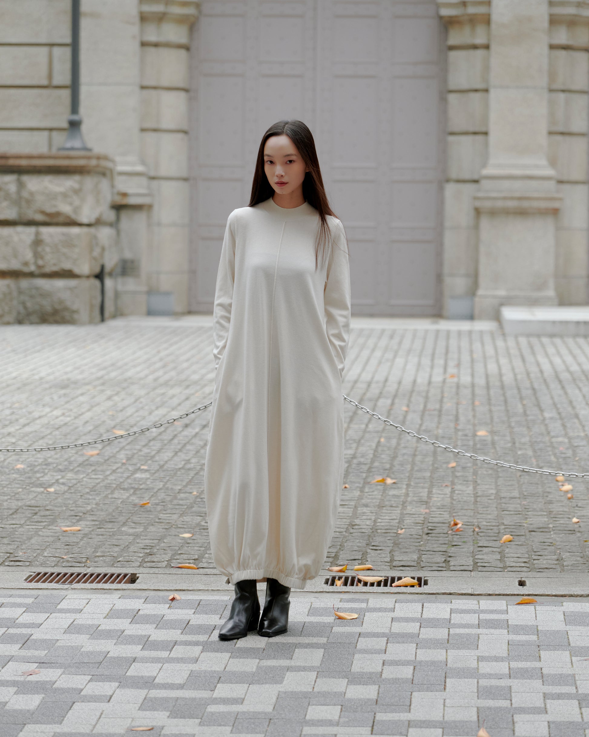 優しい膨らみとしなやかな落ち感が魅力のニットワンピース。