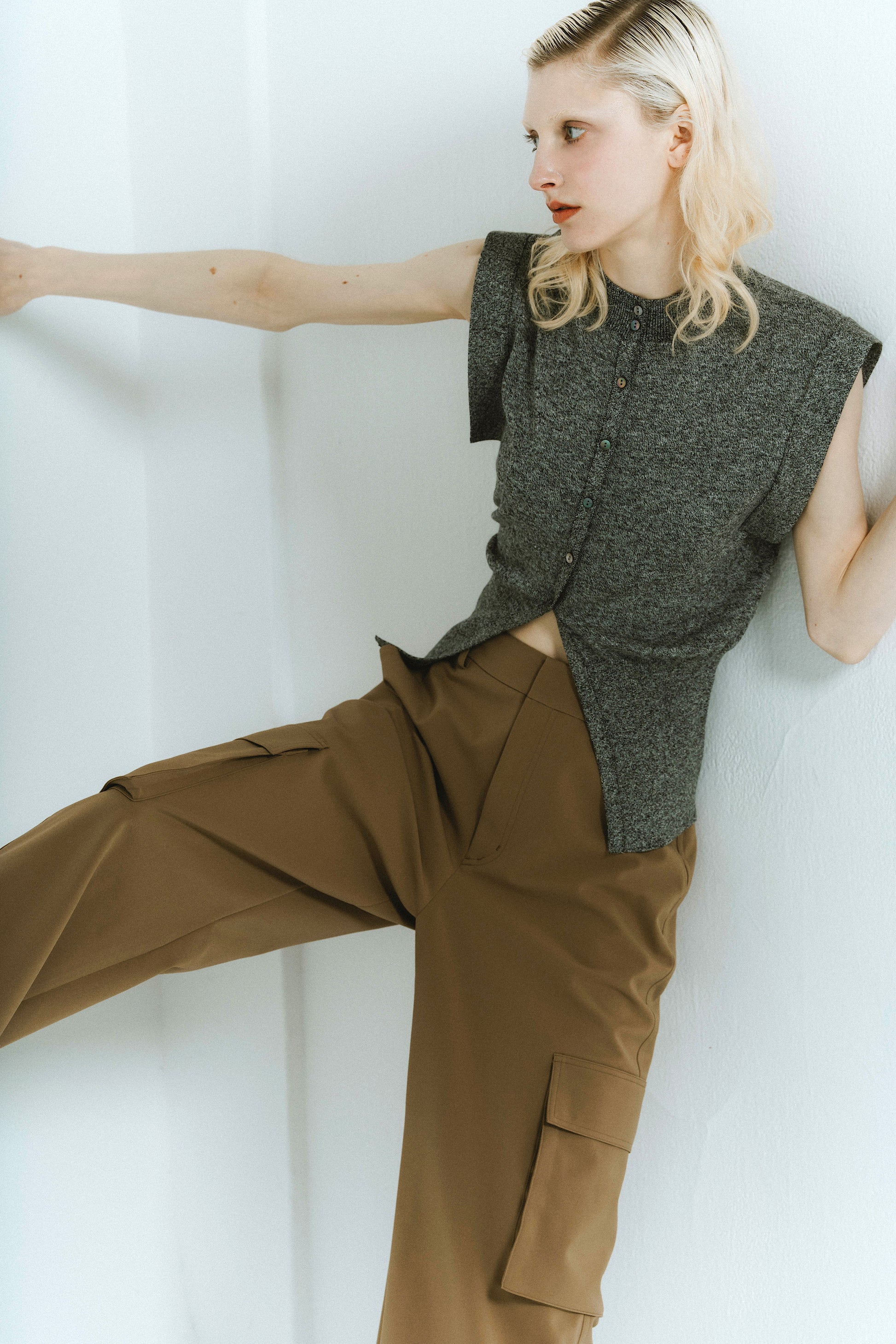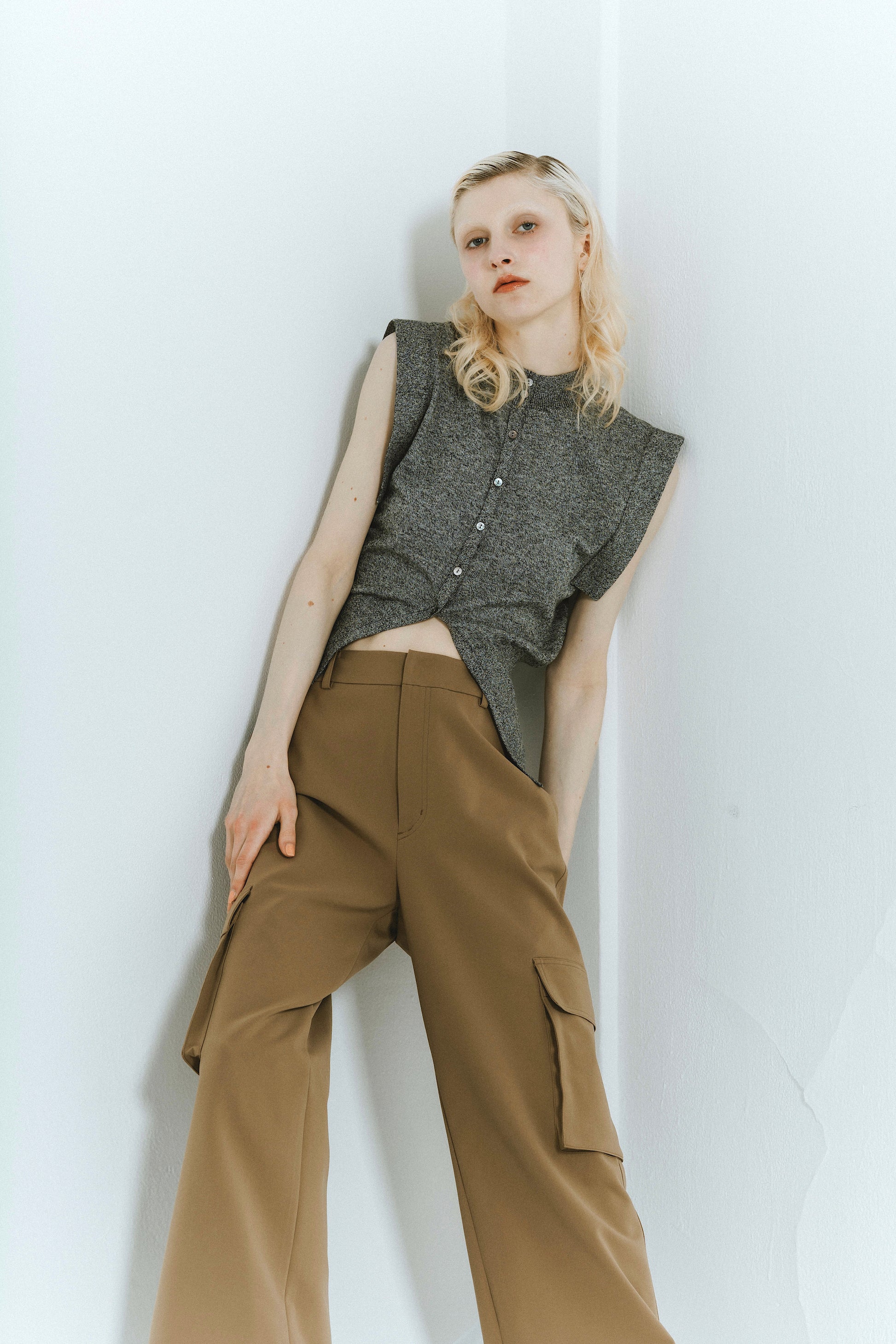 サイドの大きめポケットがさりげないアクセントになり、シンプルながらも抜け感のあるスタイリングにぴったり。