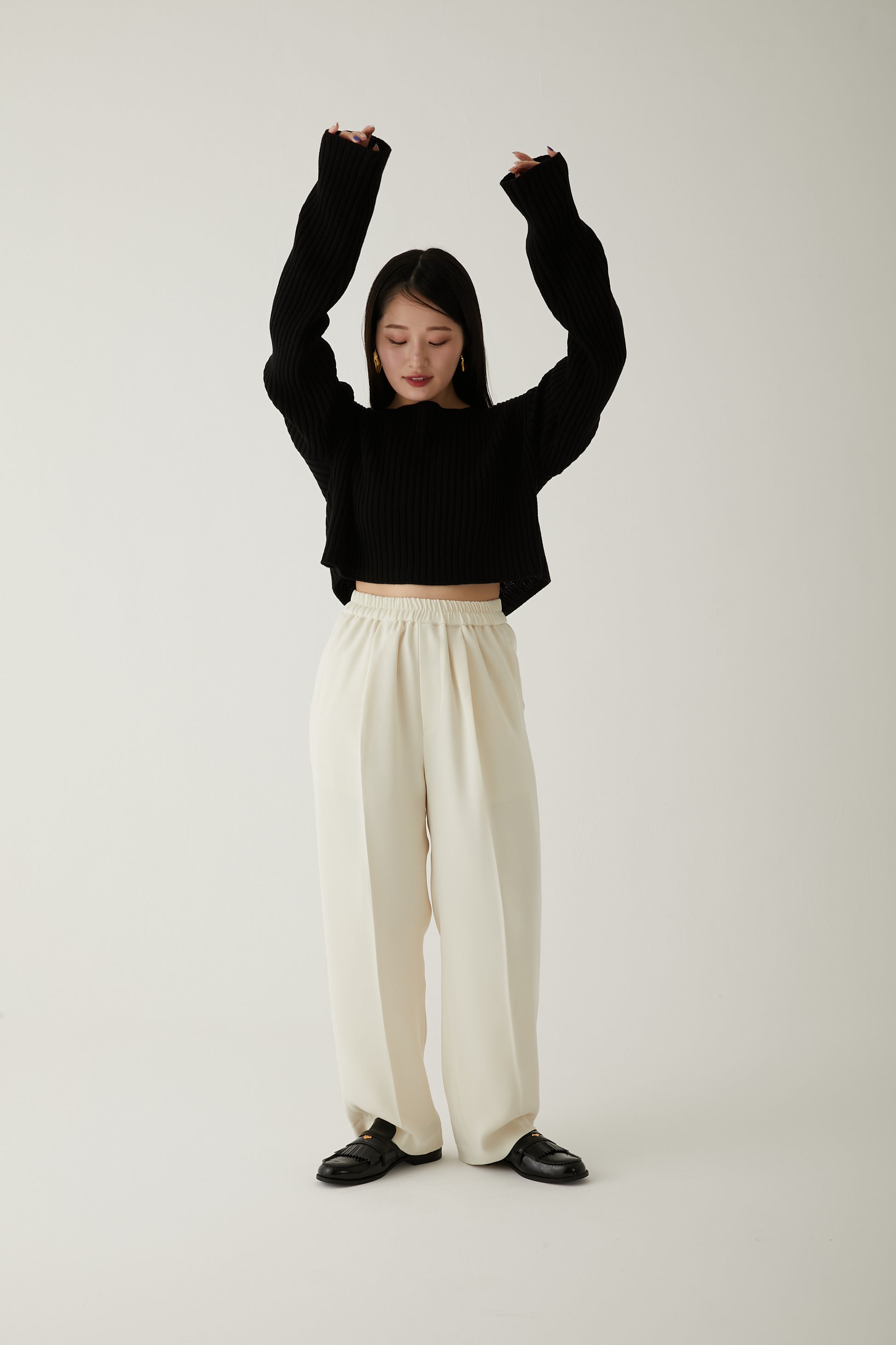 とろみのある質感で、上品に仕上げてくれるパンツ。
