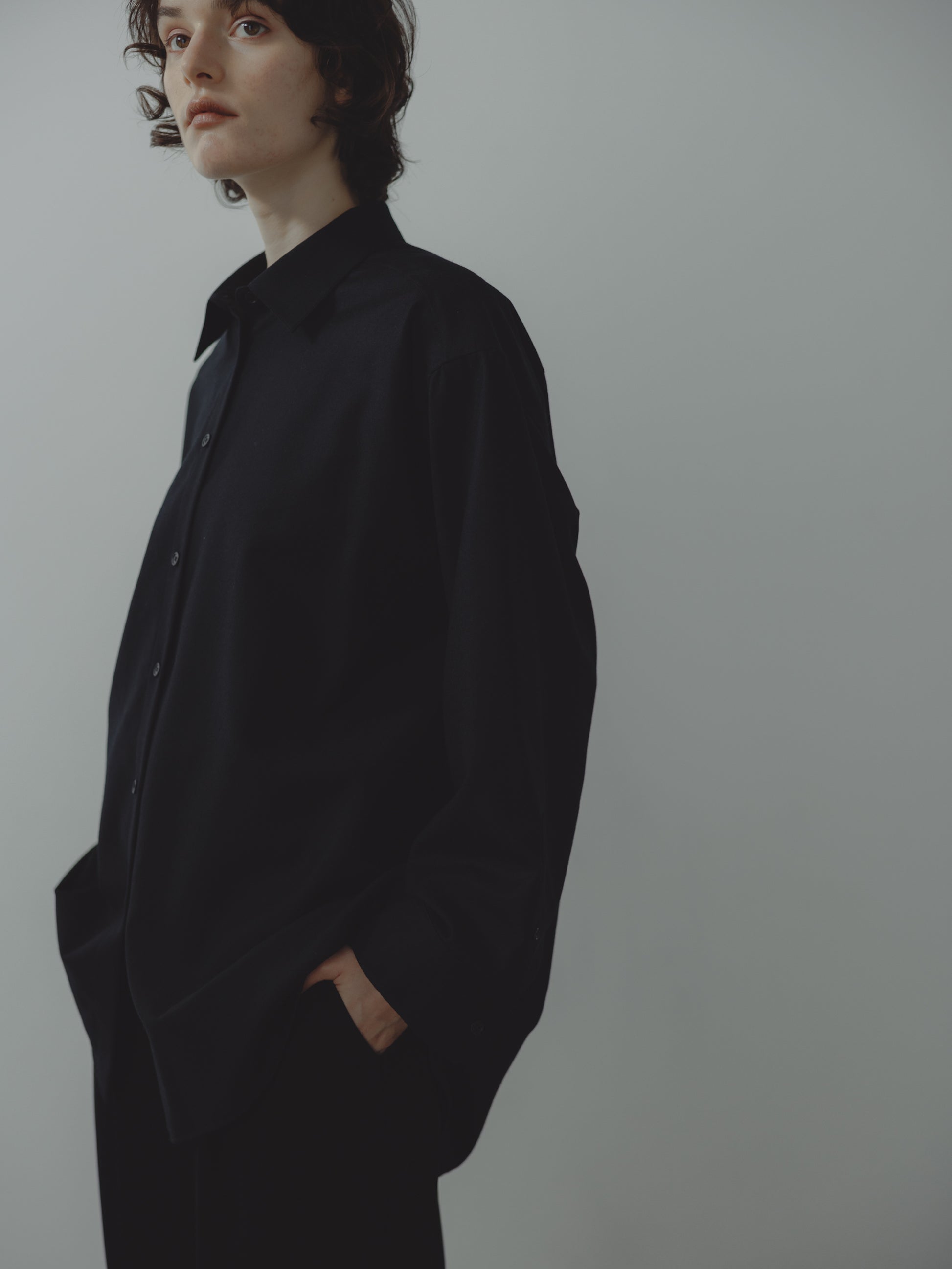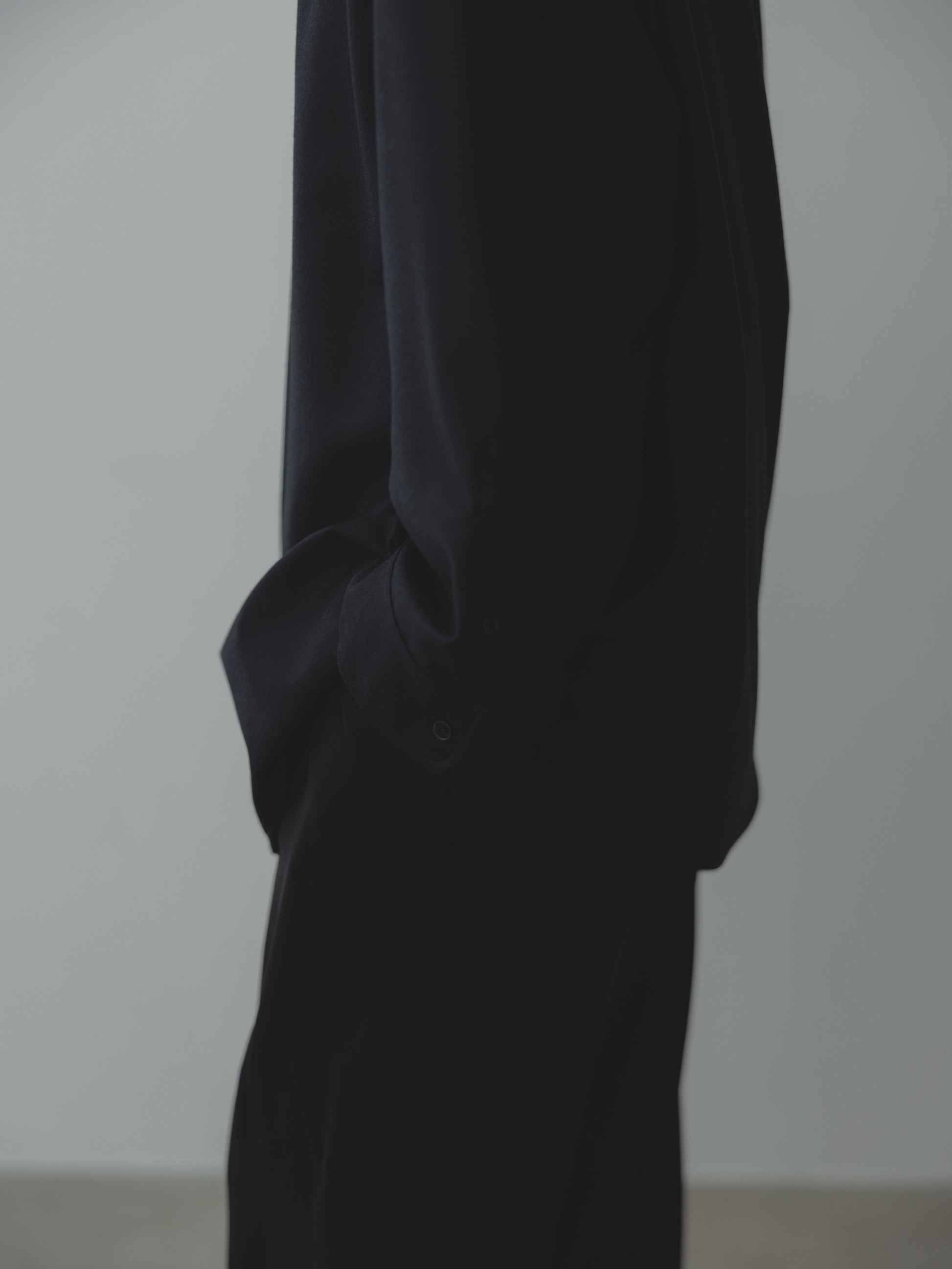 比翼仕立てのフロントと長めのカフスが、ミニマルで洗練された印象に。