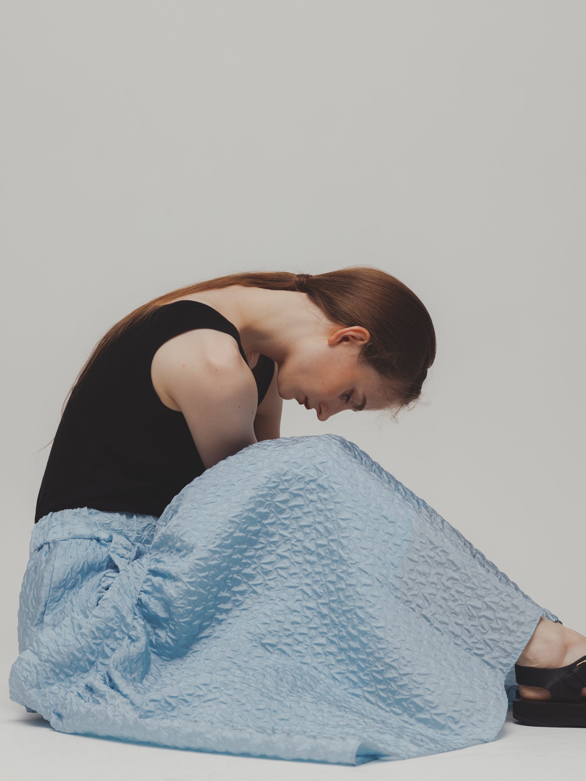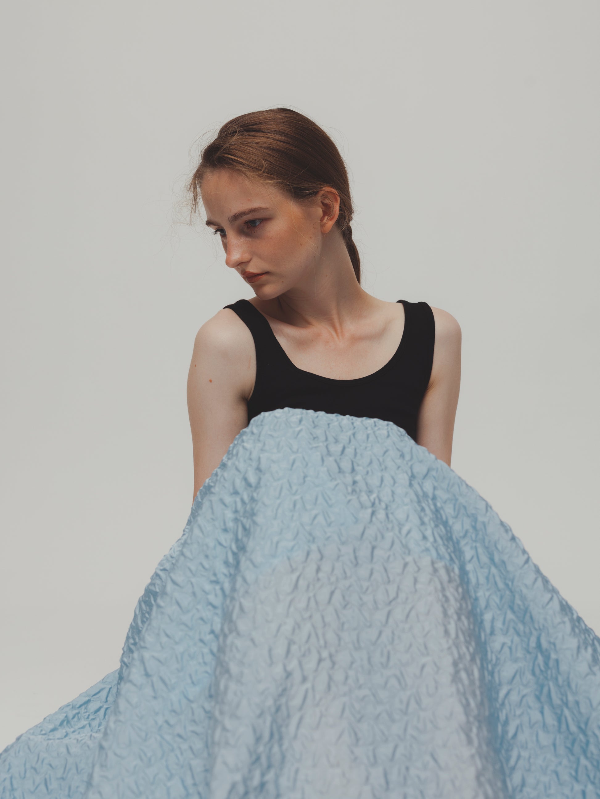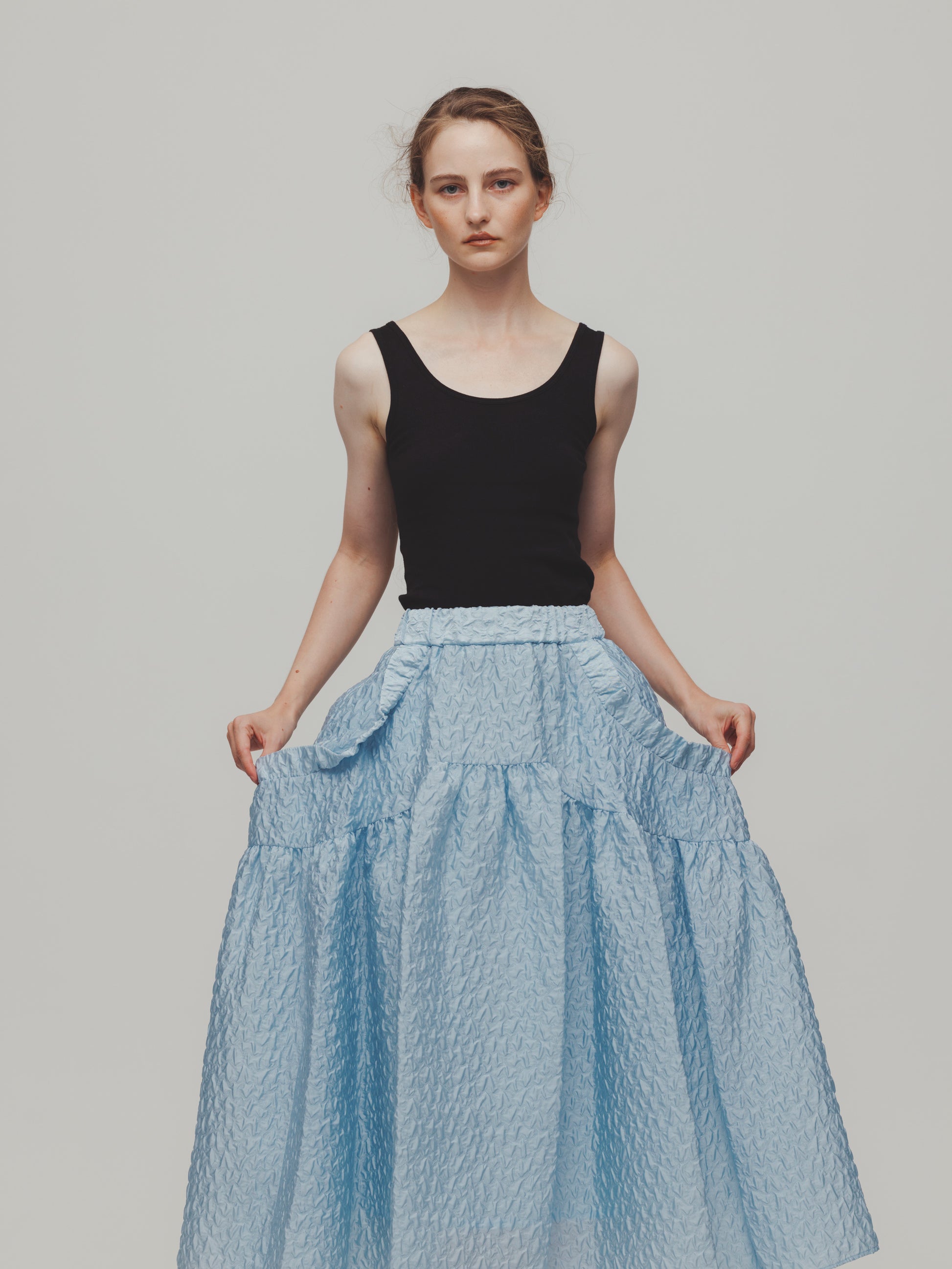 RUFFLE GATHERD SKIRT/BLUE