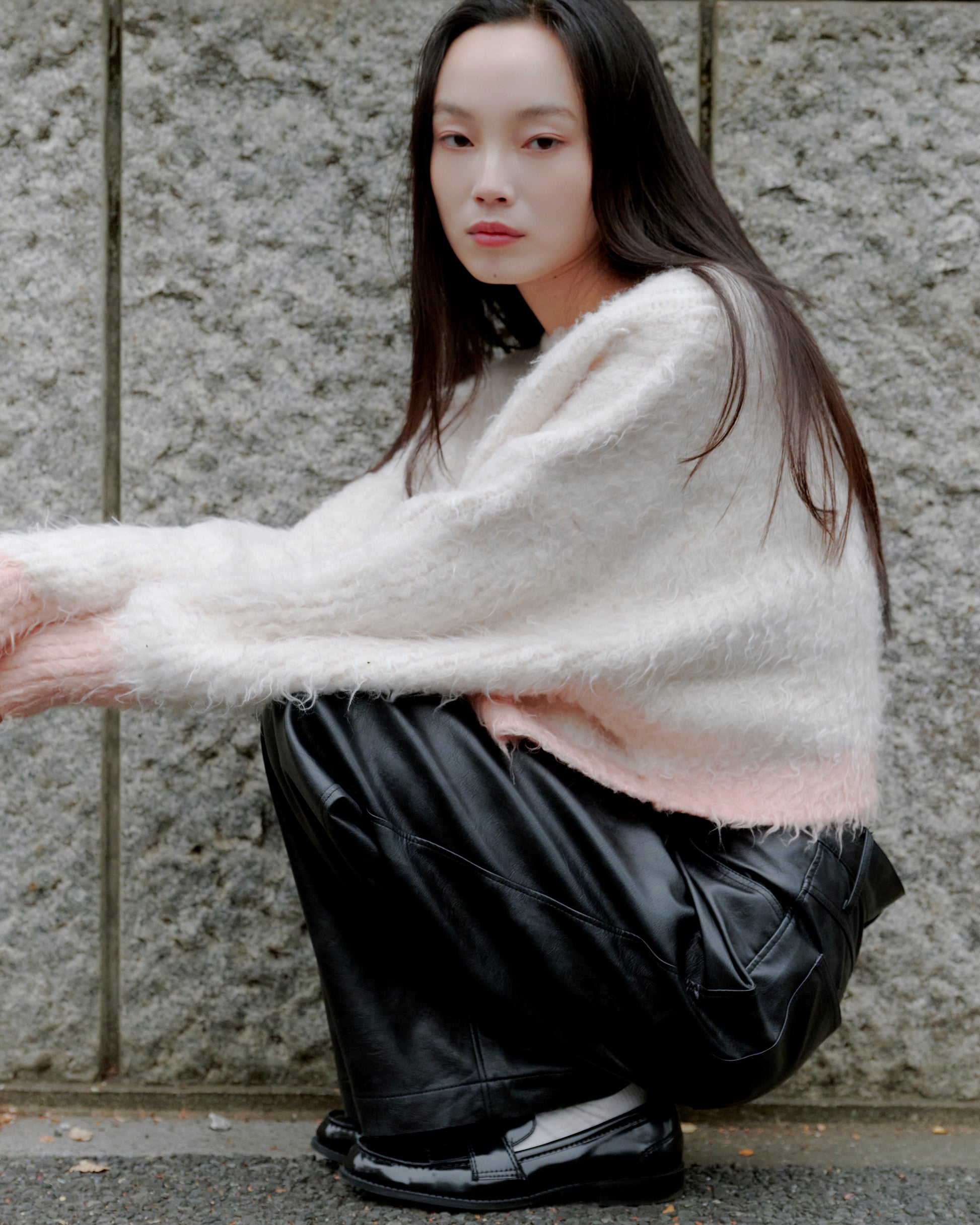 軽やかな毛足が揺れる、柔らかな表情のクロップドニット。